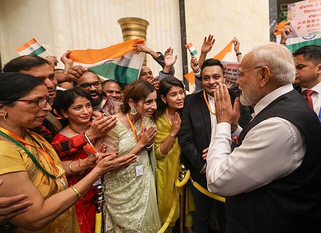 PM receives warm welcome by the Indian community at hotel in Tianjin, China on August 30, 2025.